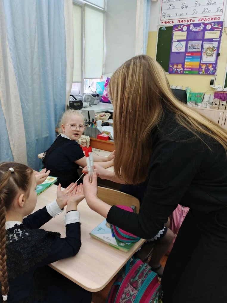 Специалист ФФБУЗ «Центр гигиены и эпидемиологии в УР» в г. Воткинске в целях реализации лекториев «Санпросвет» провел с учащимися 2 Б класса МБОУ СОШ №10 мероприятие посвященное «Гигиене рук». Дети 2 Б класса узнали, как правильно мыть руки, а также когда необходимо это делать — до и после. Во время мероприятия учащиеся ответили на 5 вопросов о мытье рук, узнали о том, кто же живет на руках у каждого человека, и кто такие острицы и как они выглядят. В конце мероприятия с детьми провели эксперимент как же правильно мыть руки с мылом, с антисептиком или же просто водой, для этого мы взяли смывы с рук у учащихся.