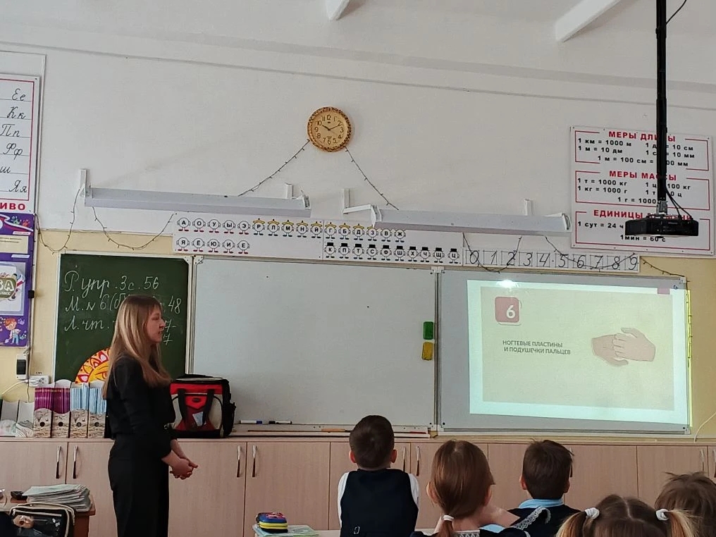 Путешествие с страну правильно помытых рук. Специалист ФФБУЗ «Центр гигиены и эпидемиологии в УР» в г. Воткинске в целях реализации лекториев «Санпросвет» провел с учащимися 2 Б класса МБОУ СОШ №10 мероприятие посвященное «Гигиене рук».