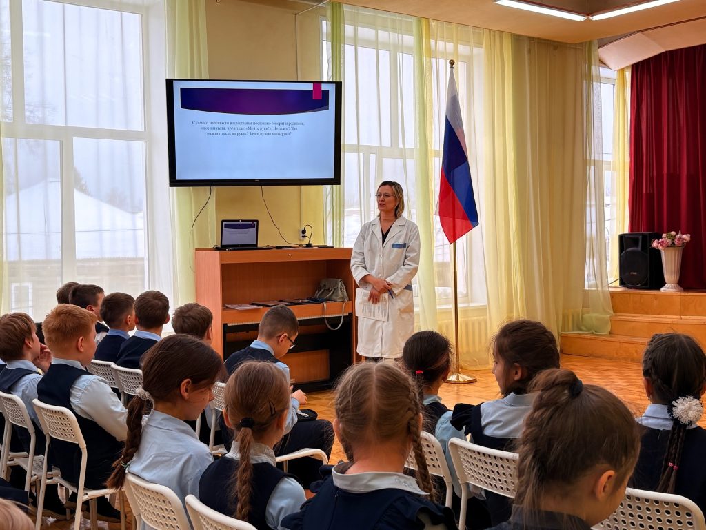 Специалист ФФБУЗ «Центр гигиены и эпидемиологии в УР» в г. Воткинске в целях реализации лекториев «Санпросвет» провел с учащимися 3 классов МБОУ СОШ №3 мероприятие посвященное «Гигиене рук». Дети узнали, как правильно мыть руки, а также когда необходимо это делать — до и после. Во время мероприятия учащиеся ответили на 5 вопросов о мытье рук, узнали о том, кто же живет на руках у каждого человека. В конце мероприятия с детьми провели эксперимент как же правильно мыть руки с мылом, с антисептиком или же просто водой, для этого мы взяли смывы с рук у учащихся.